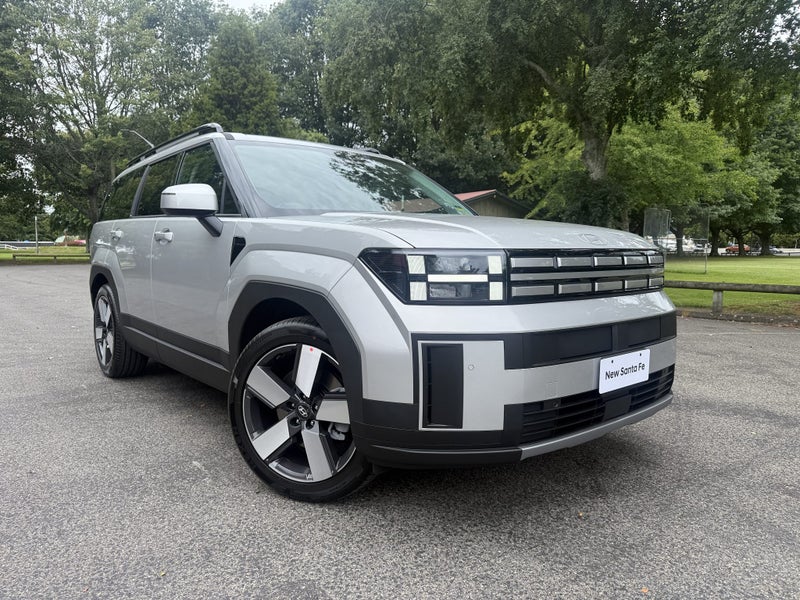 The 2026 Santa Fe features a striking new design with a more squared-off, muscular appearance. The front fascia is dominated by a wide, rectangular grille framed by distinctive H-shaped LED headlights that give it a futuristic and aggressive look. The boxier silhouette, high ground clearance, and sleek lines enhance its road presence and emphasize its off-road readiness. Side Steps and roof rails complete the package for those looking for added functionality and style.
